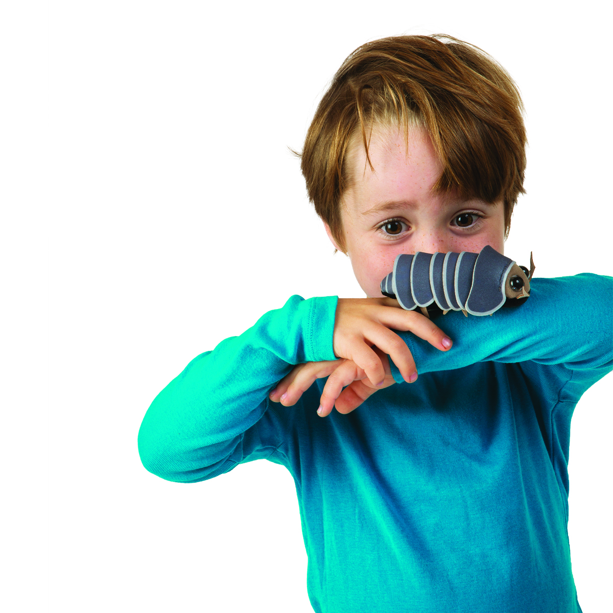 Die Folkmanis Fingerpuppe mini Assel auch als Pillenwanze oder Kartoffelwanze bekannt, ist ein lustiger Insektenfreund mit großen Augen und Exoskelettplatten, die sich durch deinen Finger bewegen lassen.